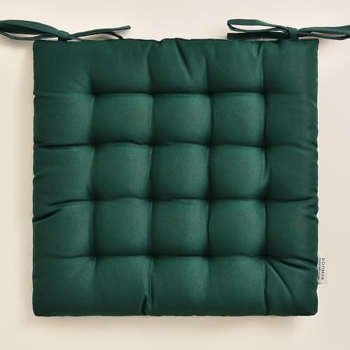 ROOM99 Aura stolkudde 40 x 40 x 4,5 cm sittkudde, sittkudde med band, dekorativ kudde, stol, golv, golvkudde, kudde, utomhus, inomhus, vardagsrum, mörkgrön, 1 styck