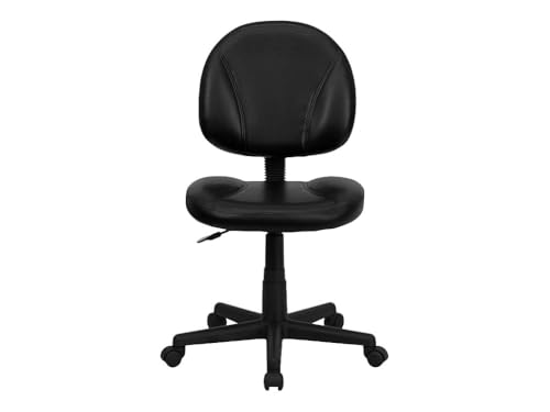 Flash-möbler mitten av ryggen läder ergonomisk svängbar uppgift stol, metall, svart, 58 x 55 x 22,86 cm