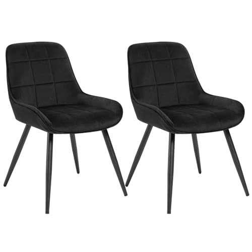 WOLTU 2 x matsalsstolar matstolar köksstol stoppad stol vardagsrumsstol fåtölj med ryggstöd, sammetssits, metallben, svart, BH142sz-2