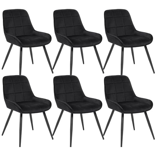 WOLTU Matrumsstolar set om 6, stoppad stol i sammet, köksstol, vadderad, accentstol för vardagsrum sovrum kök, ergonomisk stol med ryggstöd, svart, BH331sz-6