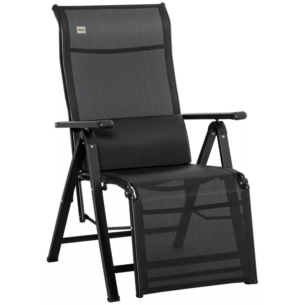 Outsunny Solstol Liggestol Trädgårdsstol 9 justerbara positioner Tyngdlös stol Textilene Stål Svart 70 x 65 x 111 cm