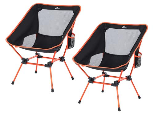 Sportneer campingstol hopfällbar campingstol bärbar campingstol 150 kg hopfällbar stol ultralätt förpackningsstorlek liten fällstol med bärväska för picknick, utomhus, vandring, orange, 2-pack