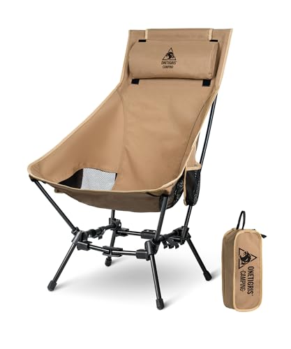 OneTigris DRAGONHIDE campingstol med hög rygg hopfällbar 150 kg, hopfällbar stol camping lätt, fiskestol hopfällbar med 2 sidofickor, hopfällbar stol ultralätt för utomhus, vandring (coyote brun)