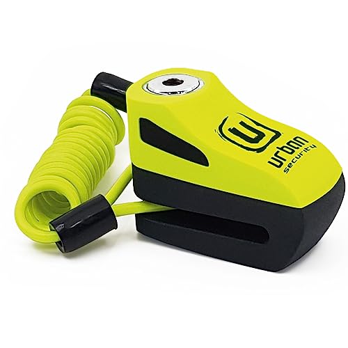 Urban Securtiy UR955Y: Universal skivlås, stöldskydd, motorcykel, cykel, skoter, skoter, gul, presentpåminnelsekabel, skivlås, säkerhet.