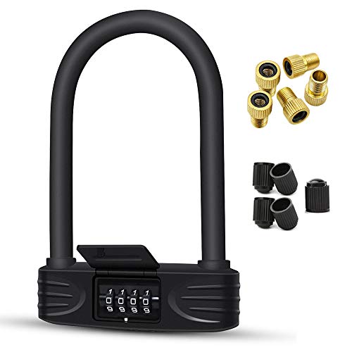 N N.ORANIE Cykel U-lås, 4-siffrigt återställningsbar cykel U-lås säkerhet, stöldskydd, PVC-belagt härdat stål, cykellås för cykel, motorcykel, skoter sportutrustning, grillar (svart)
