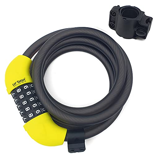 URBAN UR454L Hänglås Cykel med Kombination Flexibel stålkabel Ø12, 180cm med säkerhetskod Anti-stöldskydd Cykel Robust Kompakt Lätt Transport, Unisex-Vuxen, Svart