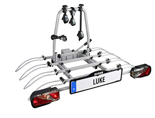 EUFAB 11514 Cykelhållare LUKE, E-cykel, stöldskydd, för 4 cyklar, för släpvagnskoppling, silver, grå