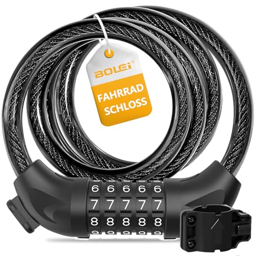 BOLEi Cykellås med numerisk kod 12 mm 120 cm stöldskydd 5-siffrigt kodkombinationslås vattentätt för cykel, e-cykel, barnvagn, trappa, grill