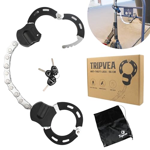 TRIPVEA® Stöldskydd elektrisk skoter, cykel, barnvagn - extra starkt lås - stöldskydd handbojor med 10 länkar - längd 56 cm - Ø 8 cm - lås + 3 nycklar (stöldskydd)