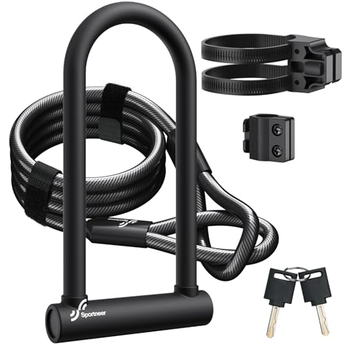 Sportneer Cykellås, 18 mm, lastbart, bygellås med 180 cm, högsäkerhets-stålkabel och stabil hållare och nyckel, stöldskydd, säkra lås för vägcykel, e-cykel, mountainbike, vikbar cykel