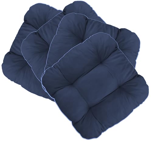 LILENO HOME Set om 4 stolskuddar mörkblå (38 x 38 x 8 cm) – sittdyna för trädgårdsstol, kök eller matstol – bekväm UV-resistent stoldyna för inomhus- och utomhusbruk som stolkudde