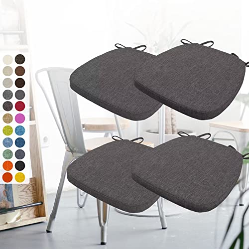 Uppsättning av 4 stolkuddar 40 x 38 x 3 cm med band, tvättbar sittdyna halkfri, stoldyna, sittdyna, avtagbart överdrag med dragkedja, perfekt för hem kontor kök matsal, kaffe grå