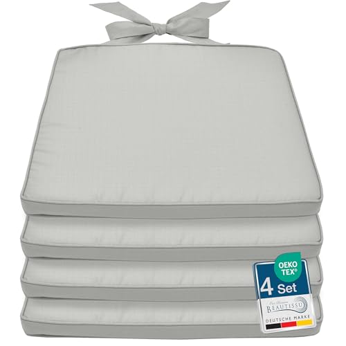 Beautissu Pia sats med 4 stolkuddar 40 x 45 cm - sittdyna utomhus trädgårdstolskudde, trädgård sittdynor set för rottingstolar, utomhus sittdyna trapetsformad, stoldyna, ljusgrå