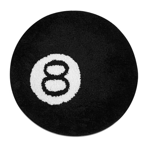 Wokii simulerad biljardboll nr. 8-matta, rund, tuftning, mjuk stoldyna, halkfri badrumsmatta, svart matta för barnsovrum, dekormattor, svarta cirkelmattor för vardagsrum, festdekorationer