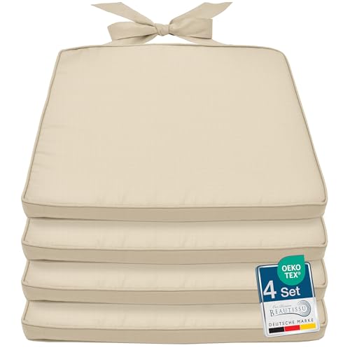 Beautissu Pia sats om 4 stolkuddar 40 x 45 cm - sittdyna utomhus trädgårdstolskudde, trädgård sittdynor set för rottingstolar, utomhus sittdyna trapetsform, stoldyna, natur