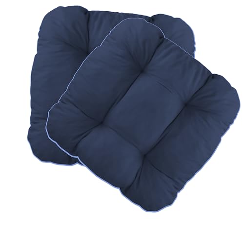 LILENO HOME Uppsättning av 2 stolskuddar mörkblå (38 x 38 x 8 cm) – sittdyna för trädgårdsstol, kök eller matstol – bekväm och UV-tålig stoldyna för inomhus- och utomhusbruk som stolkudde