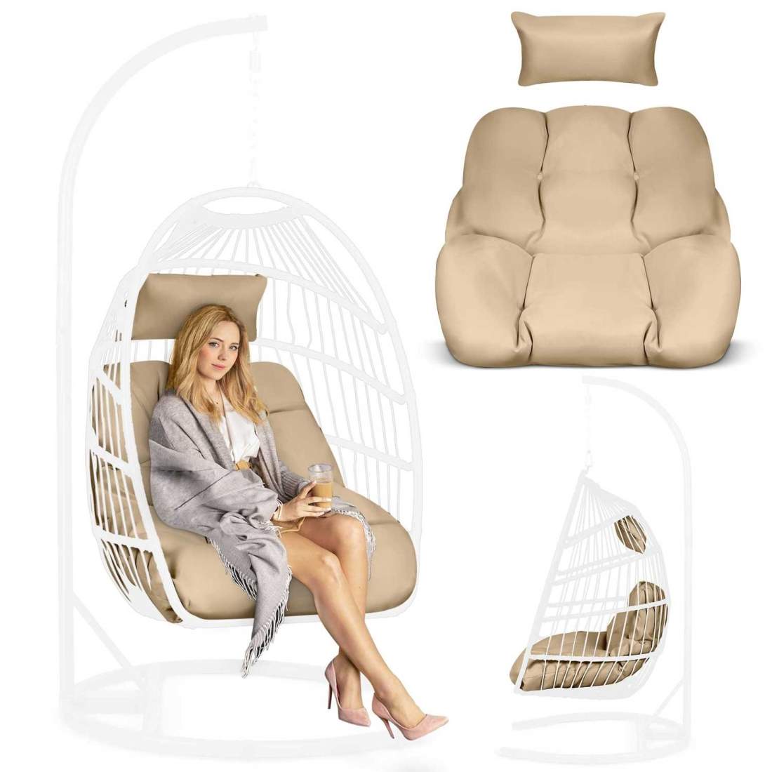 CJCSM Papasan Stolsdyna, Trädgård Utomhus Mjuk Tjockning Överfylld Rund Stolsdyna, Hängkorg Hängmattor Gungstol Sittdyna (Beige 130x130cm)