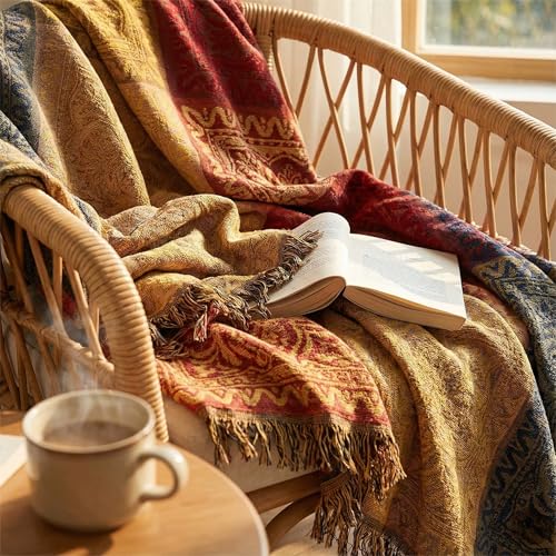 JAY-TECH 60 tum x 75 tum Chenille Jacquard tofsar överkast filtar för säng soffa dekorativt mjukt stolskydd – färgglatt tribalmönster (M)