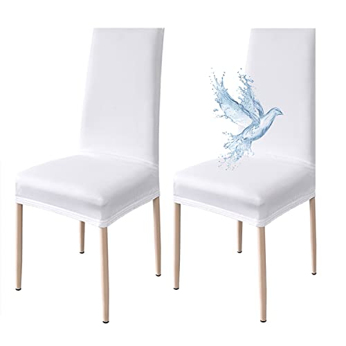 Stolsöverdrag med Ryggstöd, 2 Stycken, Elastiska, Vattentäta, Universell Storlek, Stolsöverdrag för Moderna kök och Vardagsrum, Tvättbara och Avtagbara - Ren vit