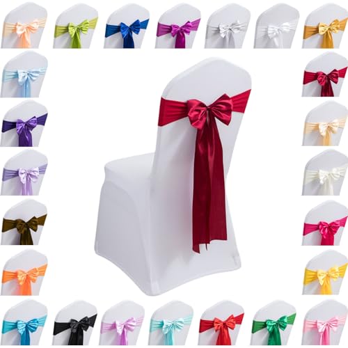 Stolsbågar 6 10 20 50 100 150 st stretchrosetter för stolar, Simplicity-bågar för stolsöverdrag, stolsrosetter för bröllopsfester utan vita stolsöverdrag(Wine red,50PCS)