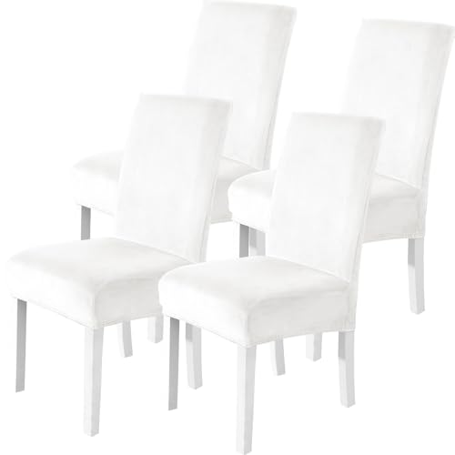 CYCMACO Stolöverdrag Sammet 4 Stycken, Universellt Matstolsöverdrag Modernt, Stretchstolskydd Elastiskt Med Ryggstöd, Avtagbart Tvättbart Stolsöverdrag Hållbar, Stolskydd För Bankett, Vit
