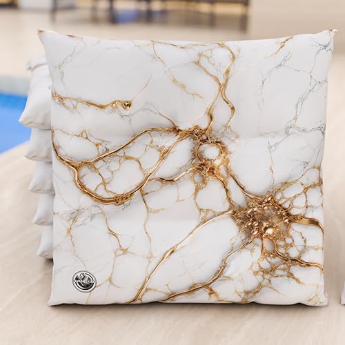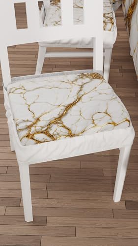 PETTI Artigiani Italiani - Stolskuddar i set om 6, vit marmoreffekt 40 x 40 cm, fyrkantiga stolsöverdrag i mikrofiber med digitalt tryck och snören, 100% tillverkad i Italien
