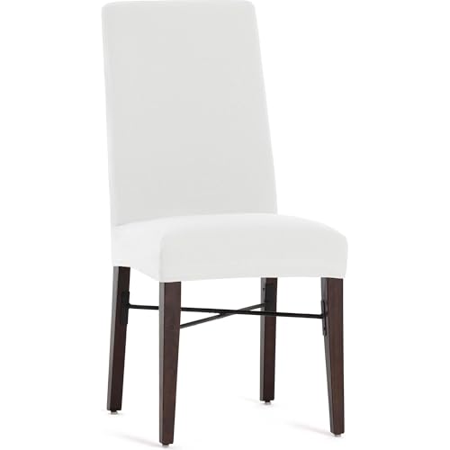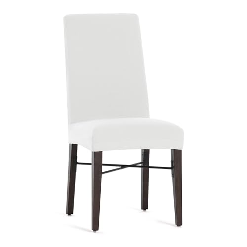 ECOMMERC3 | Förpackning med 2 andningsbara bielastiska stolsöverdrag: 2 stolsöverdrag vit passform dagligt slitage, lätt att fästa och ta bort