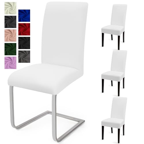 Stolsöverdrag 4 stycken, stretchstolsöverdrag, elastisk, modern, skydd, elastan, stretchskydd, stolsöverdrag, stolsöverdrag, mycket lätt att rengöra och hållbart, universellt – (4 stycken, vit-O)