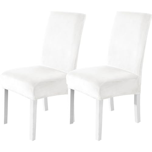 CYCMACO Stolöverdrag Sammet 2 Stycken, Universellt Matstolsöverdrag Modernt, Stretchstolskydd Elastiskt Med Ryggstöd, Avtagbart Tvättbart Stolsöverdrag Hållbar, Stolskydd För Bankett, Vit