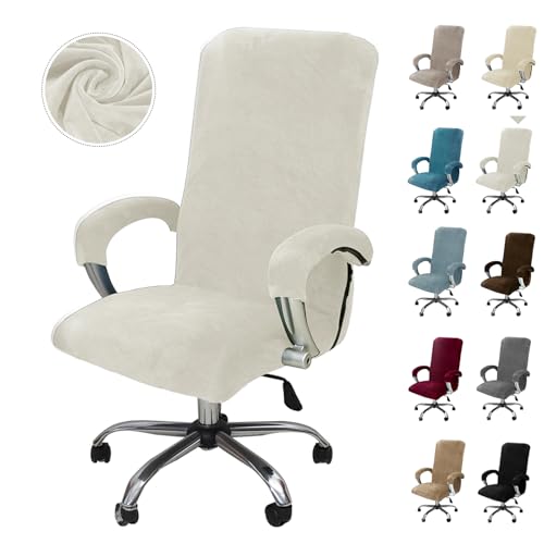 Alishomtll Kontorsstol, överdrag med armstöd, stretch, stolskydd, gamingstolsöverdrag, avtagbart fåtöljöverdrag, elastiskt stolsöverdrag för kontorsstol, datorstol, snurrstol (vit, stor)