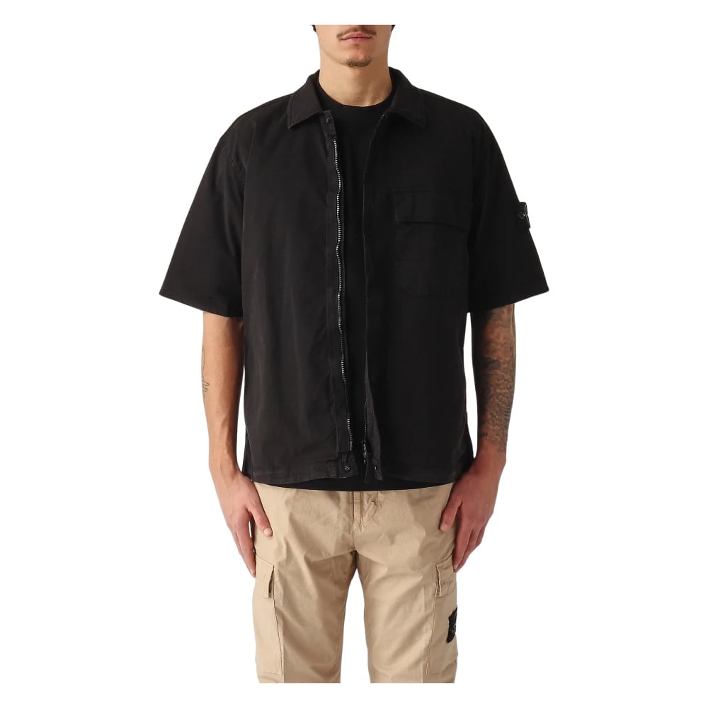 Stone Island Cotton Stretch Zip Overshirt Black