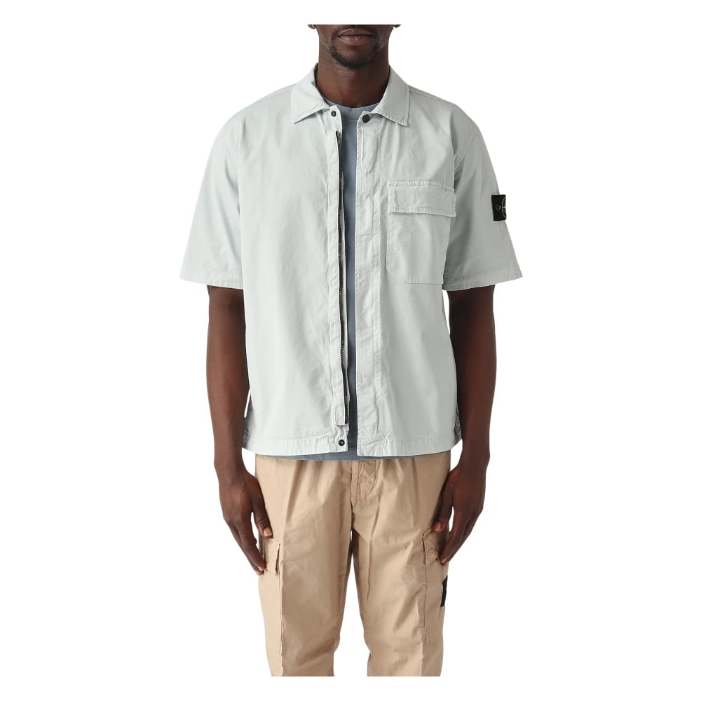 Stone Island Cotton Stretch Zip Overshirt Pearl Grey