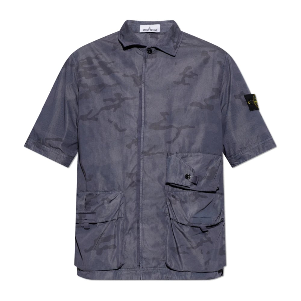 Stone Island, Skjortor , Herr, M, Bomull, Kortärmad overshirt med fickor med lock