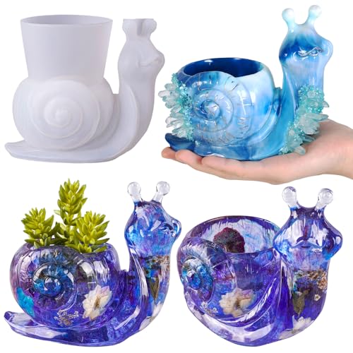 LET'S Harts Snigel silikonformar för epoxiharts, 3D stor blomkruka vas hartsformar för betongcement, söt epoxihartsform för hartsgjutning, gör-det-själv-hantverk, heminredning