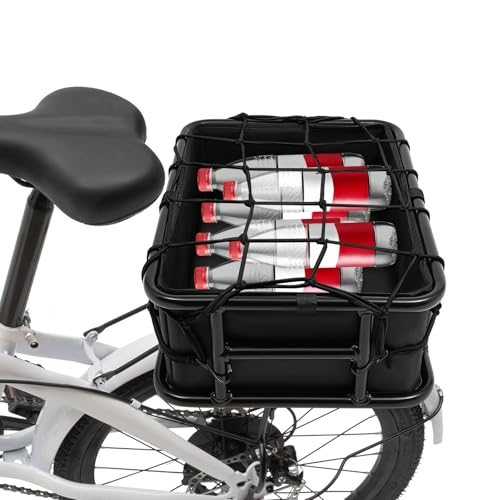 DCSYOG cykelkorg, bakhållare med bagagnät och tjockt foder, stor, svart, rackmontering, järn, 400D Oxford-tyg, gummi, polypropen, lastkapacitet upp till 70 kg/154,32 pund