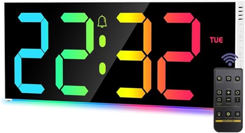 KOSUMOSU Väggklocka neon digital klocka 3D LED skrivbordsklocka stor display 24,7 cm RGB-klocka estetisk väckarklocka för sovrum vardagsrum, färgglad, fjärrkontroll, justerbar ljusstyrka
