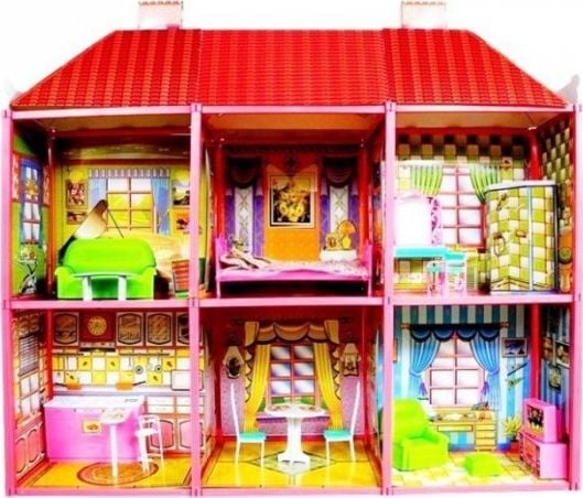 LARS360 rosa dockhus, trä, stor dockvilla flicka, lekset med möbler och tillbehör, dockhus, 3 våningar, barboy, lätt att montera, säkert och miljövänligt (60 x 24 x 70 cm)