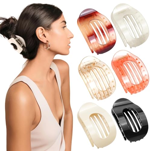 SSKHE platta kloklämmor, snygga neutrala hårhårhårhårhårspännen med rund nedlagd hårklämma för tjockt hår och tunt hår, matt stor ankfakturerad design, hållbar, lätt och halkfri (5 st)