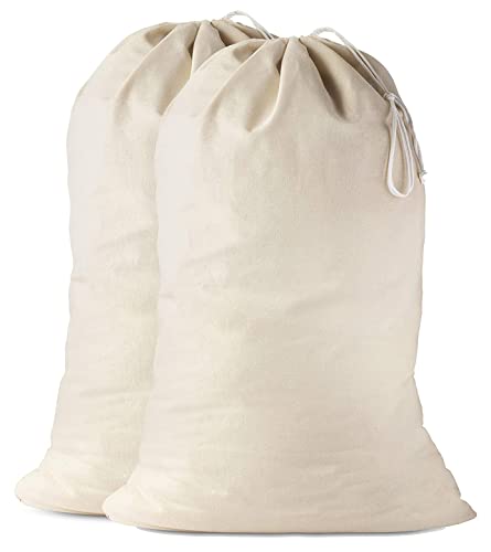 Stor tvättpåse (50 x 75 cm | 2-pack) slitstark 100 % bomullsduk naturlig färg tyg draga strängar organiserare resor läger hem högskola studentrum smutsig trasa enkel stor jultomte säckar förvaring
