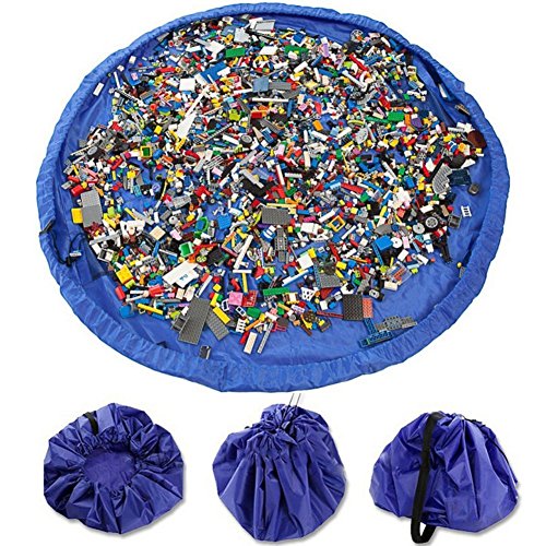 VStoy lek- och förvaringsmatta – svänger snabbt in i en axelväska – perfekt för Lego, Duplo och andra barnleksaker för snabbare städning! Atlanten blå (stor- 150 cm) (rosa) (blå)