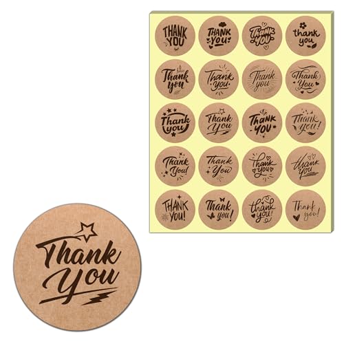 500 Stycken, 20 Mönster - Stora Tack Klistermärken Klibbetiketter För Småföretag, Thank You Stickers, Brun Kraft - 50 mm