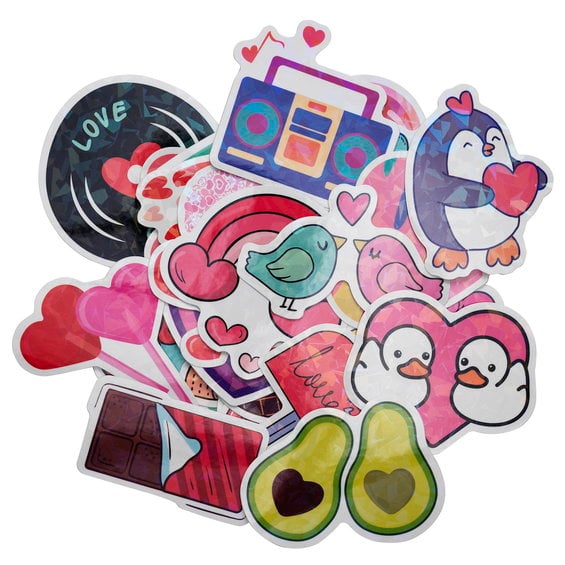 Stora stickers XL klistermärken med rosa & gnistrande kärleksfullt tema med hjärtan, 50 st.