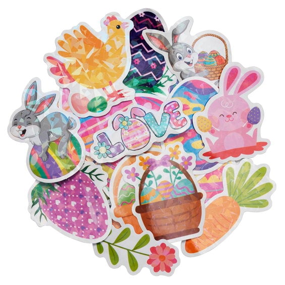 Stora stickers XL klistermärken med gnistrande påskägg och påsk-tema, 50 st.