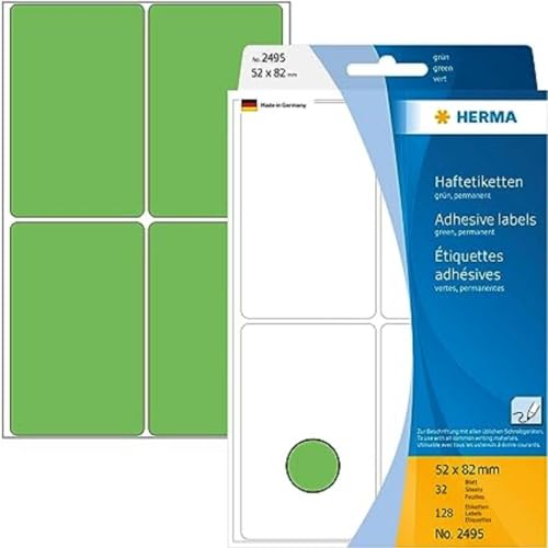 HERMA 2495 multifunktionsetiketter stora (52 x 82 mm, 32 ark, papper, matt) självhäftande, permanenta hushållsetiketter för handskriven märkning, 128 klistermärken, grön