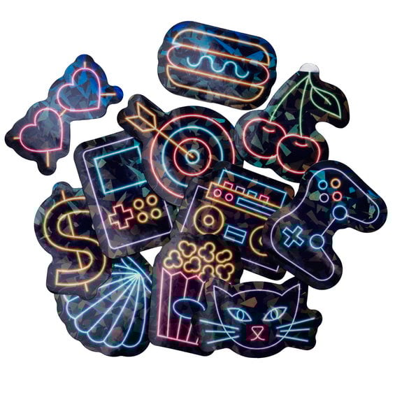 Stora stickers, svarta XL klistermärken med gnistrande neon-tema, 50 st.