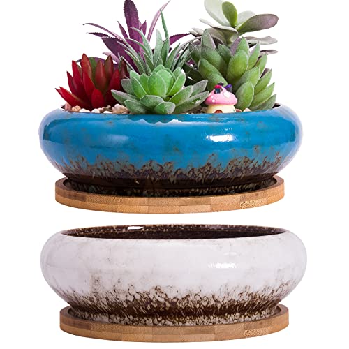 ARTKETTY 20 cm stora runda saftiga planteringskärl med dränering bambuskål keramik glaserade bonsai krukor för inomhus/utomhus växter trädgård dekorativ kaktus blomma behållare skål