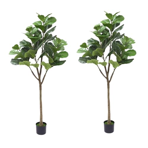 Zstar 2 stycken konstgjorda violettträd, 180 cm stora konstgjorda violettträd i krukor, Ficus-Lyrata krukväxter för vardagsrum, kontor, trädgårdsdekoration