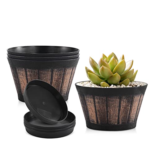 Quarut Plant krukor uppsättning av 4-pack 15 cm, stora whiskyfat planterare med dräneringshål och fat