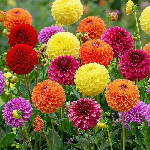 Bollkugel Dahlia Knöl Samling - 5 Pompon Dahlia Lökar Blandning från Holland - Äkta Stora Dahlia Växtlöksmix för Trädgård och Krukor - Ingen Frö, Ej Konstgjord och Vinterhärdig