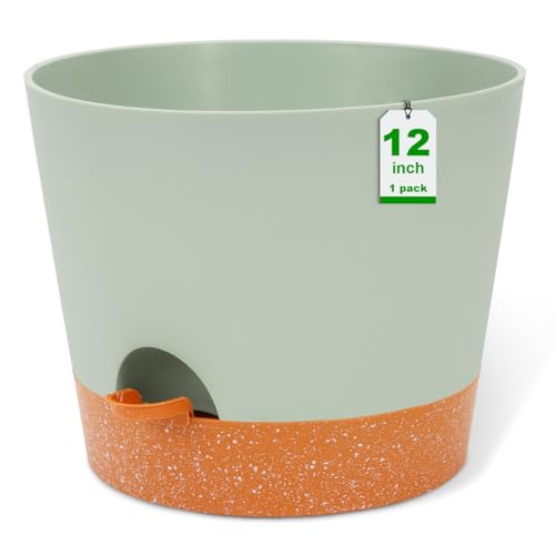 GARDIFE, 30 cm växtkrukor, självvattnande krukor, stora plastblomkrukor med djup tank och höga dräneringshål, för inomhus- och utomhusväxter och blommor, grön